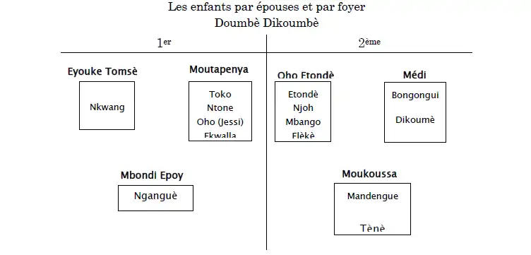 - Mouto Mouyeme, alias Moutapenya, originaire d’Ewodi mère de Toko Doumbè, Ntonè Doumbè, Oho (Jessi) Doumbè et Ekwalla Doumbè