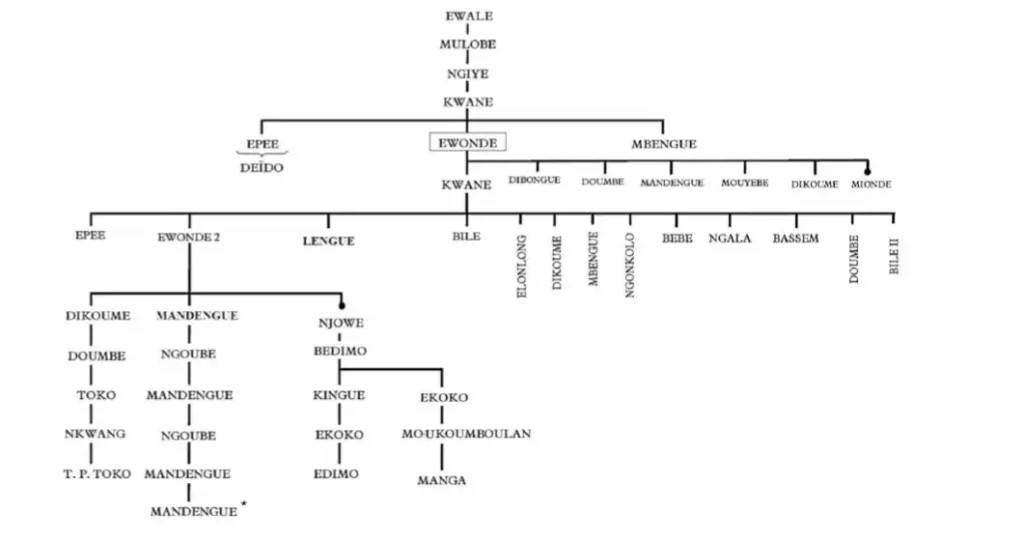 Né de Moukoussa, dernière épouse de Doumbè Dikoumè Ewondè, Mandeguè Doumbè Première des filles de Doumbè Dikoumè Ewondè, née de Oho Etondè, Mbango Doumbè Dikoumè s’est marié à Edimo Kedi de Bonabessem où elle eut un fils appelé Doumbè Edimo. Doumbè Edimo a épousé trois femmes tel qu’il suit :n’a pas laissé de progéniture.